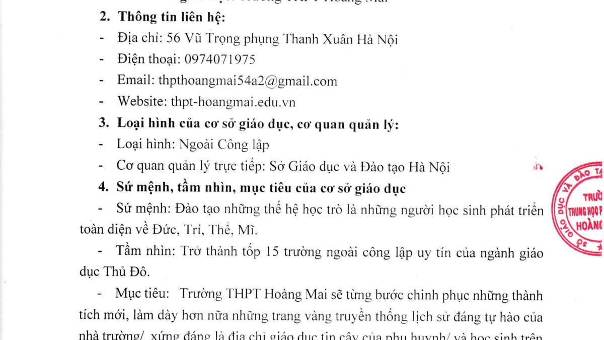 VỀ TRƯỜNG TRUNG HỌC PHỔ THÔNG HOÀNG MAI