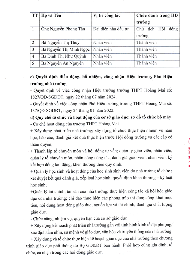 - Bà Mai Thúy Quỳnh, Thư ký Hội đồng