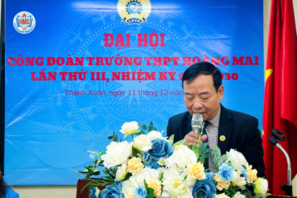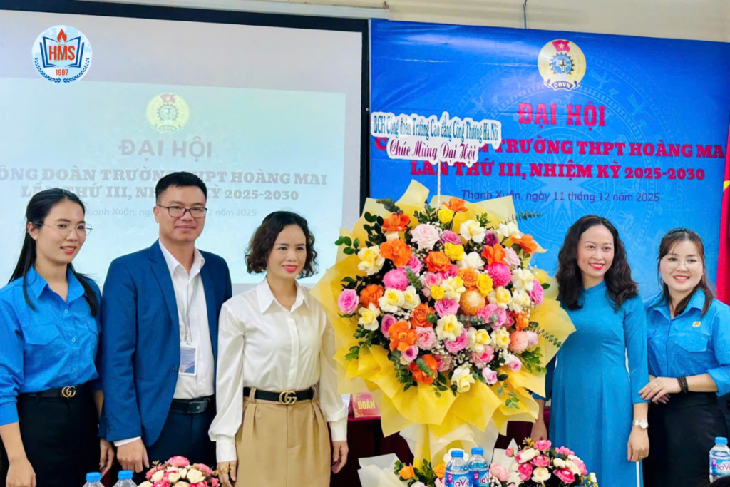 Ngày 11/12, Trường THPT Hoàng Mai long trọng tổ chức Đại hội Công đoàn lần thứ III, nhiệm kỳ 2025- 2030. Đại hội được triển khai theo Điều lệ Công đoàn Việt Nam, Hướng dẫn thi hành Điều lệ và các văn bản chỉ đạo của Liên đoàn Lao động thành phố Hà Nội, Công đoàn phường Thanh Xuân. Đại hội báo cáo tổng kết hoạt động Công đoàn giai đoạn 2023-2025 và định hướng mục tiêu, phương hướng nhiệm vụ nhiệm kỳ mới nhằm chăm lo tốt hơn cho đời sống của đội ngũ cán bộ, giáo viên và người lao động.