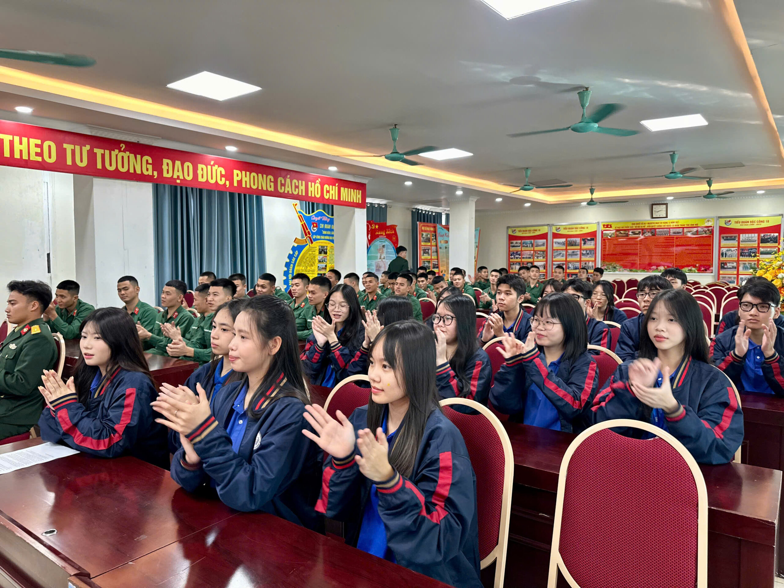 Trong khuôn khổ chương trình, các đoàn viên được xem những thước phim tư liệu lịch sử giàu cảm xúc, đồng thời lắng nghe các đồng chí cán bộ, chiến sĩ Tiểu đoàn trực tiếp chia sẻ về những đóng góp to lớn của Quân đội Nhân dân Việt Nam trong sự nghiệp bảo vệ Tổ quốc.